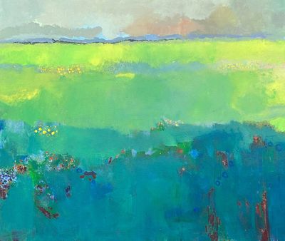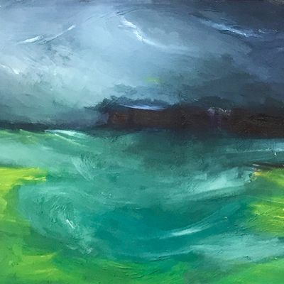 Liz Hardy's studio is at Allanbank in Berwickshire where she regularly facilitates art workshops for adults and children. Her large contemporary abstract landscape paintings capture the expanse and power of the sea, sky, and land. The painting shown here is from her Solo Exhibition in August '24.
