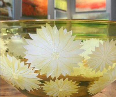 Julia creates unique and fabulous sandblasted designs on handblown 24% lead crystal bowls. Her studio is at the nearby Hirsel Centre For Arts and Crafts and is well worth a visit but an appointment is recommended if you are travelling especially to see her.