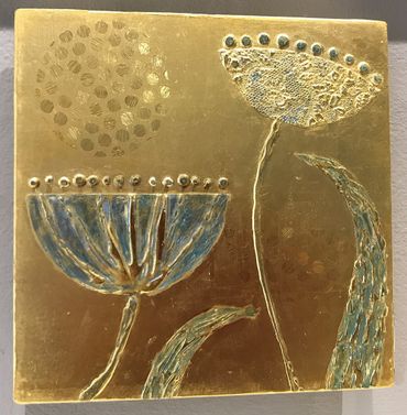 After 25 years working as a master restoration gilder, Nancy is exploring the creative effects of light bouncing off burnished 23ct gold leaf layered over a textured gesso surface. She creates the most exquisite sparkling wall panels that make perfect gifts for a special occasion.